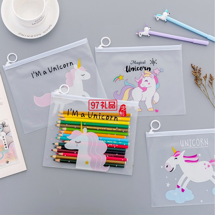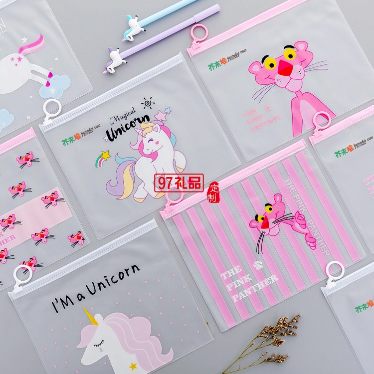 文件袋小清新防水男女學(xué)生通用用半透明文具收納袋