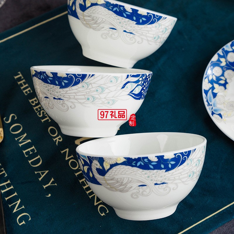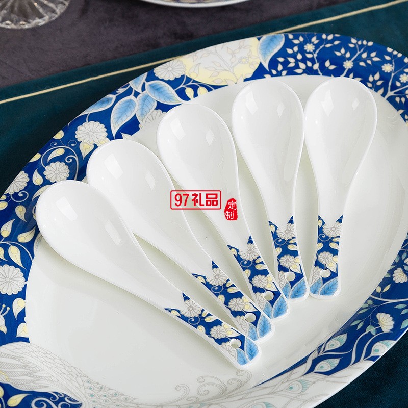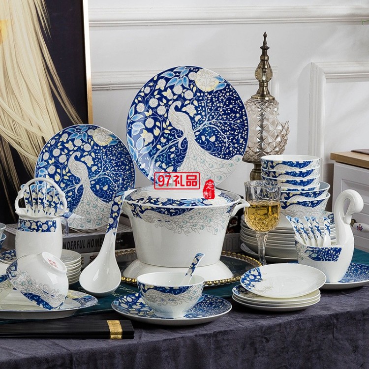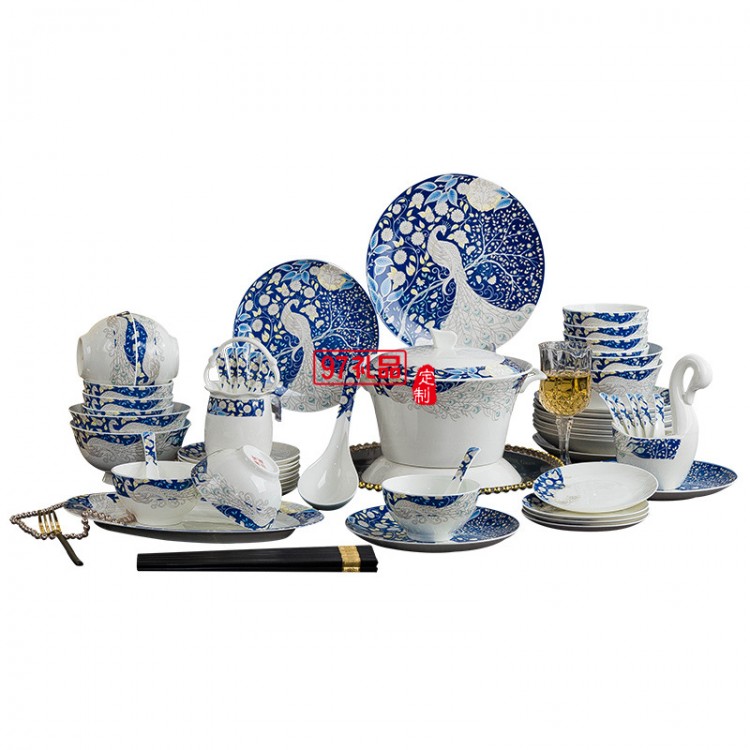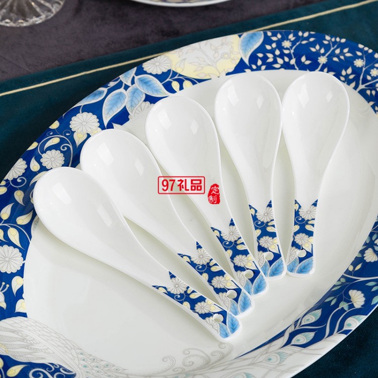 青花瓷餐具套裝 景德鎮(zhèn)陶瓷碗碟盤家用中式骨瓷餐具