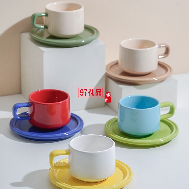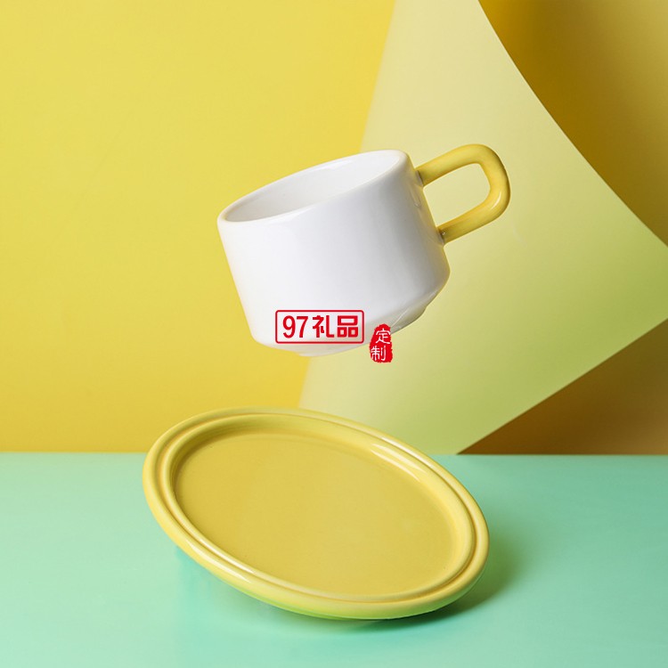 輕奢ins奇趣撞色咖啡杯 北歐簡約下午茶陶瓷杯韓式辦公室咖啡杯碟