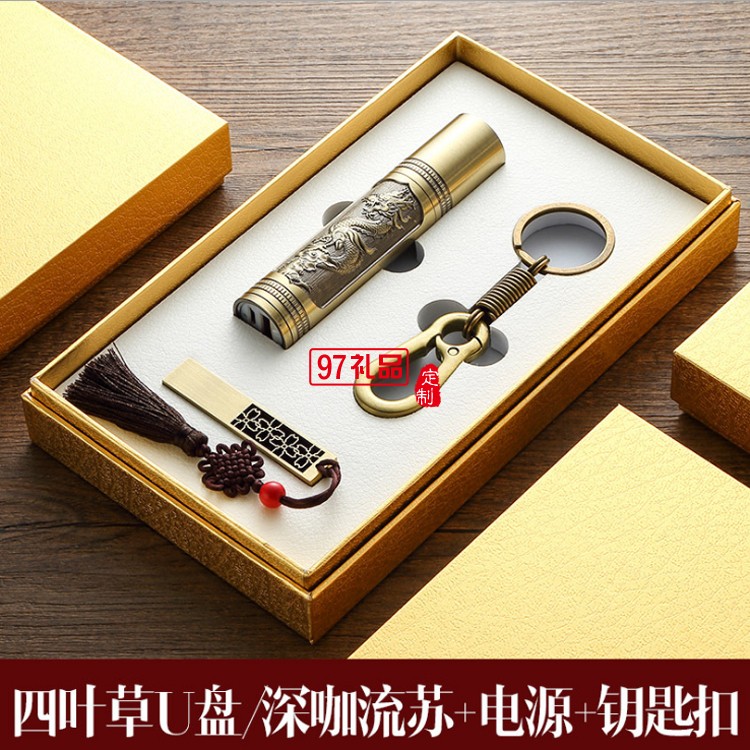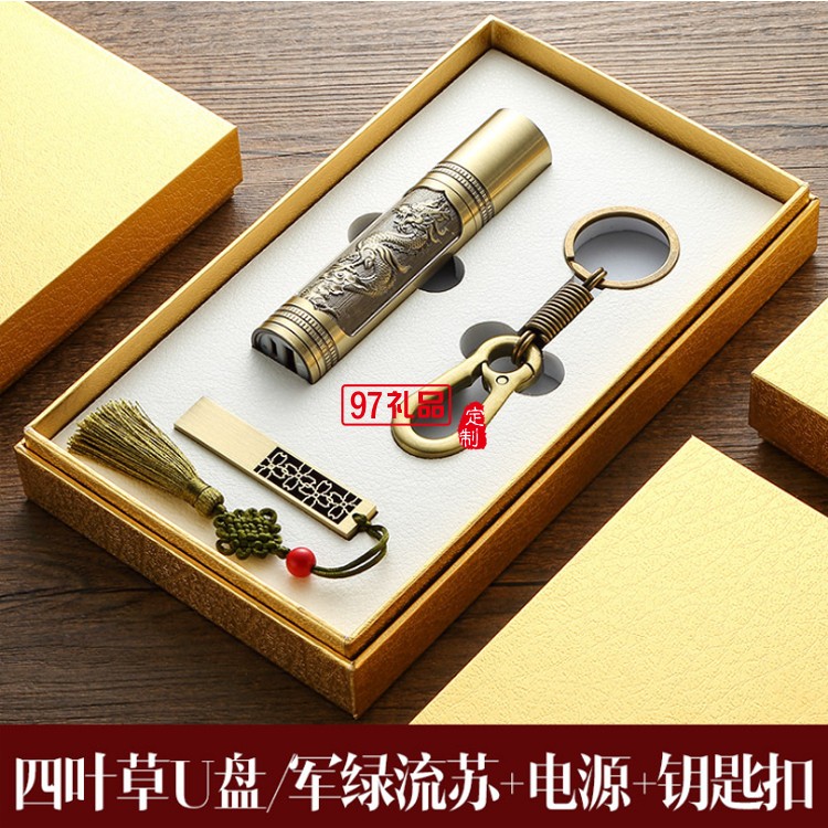 8Gu盤定制logo 青銅如意U盤 手電筒套裝企業(yè)周年定制