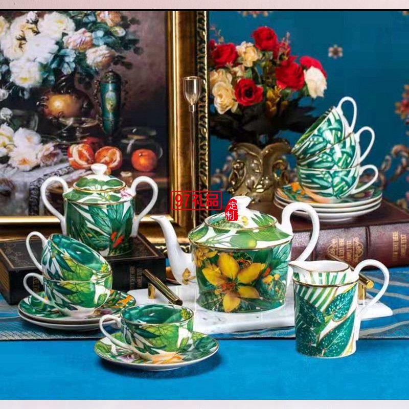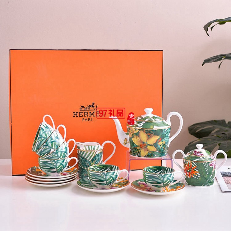 HERME愛馬歐式熱帶雨林系列15頭骨瓷餐具陶瓷盤碗勺喬遷結(jié)婚禮品