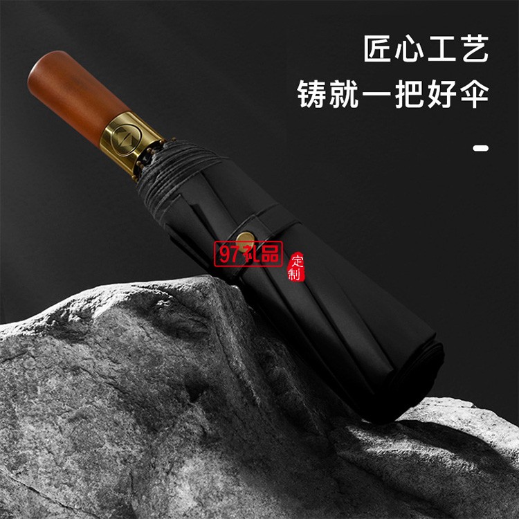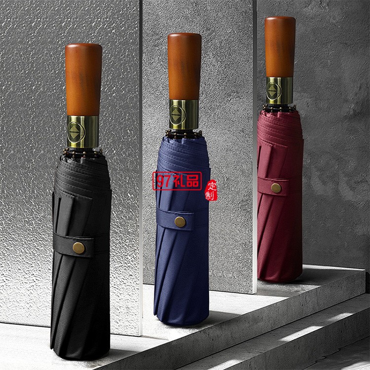 古銅拉絲三折10骨黑膠自動(dòng)晴雨傘定 制折疊商務(wù)廣告禮品雨傘批發(fā)