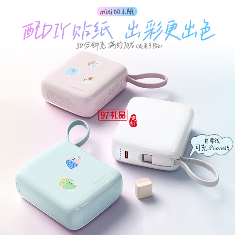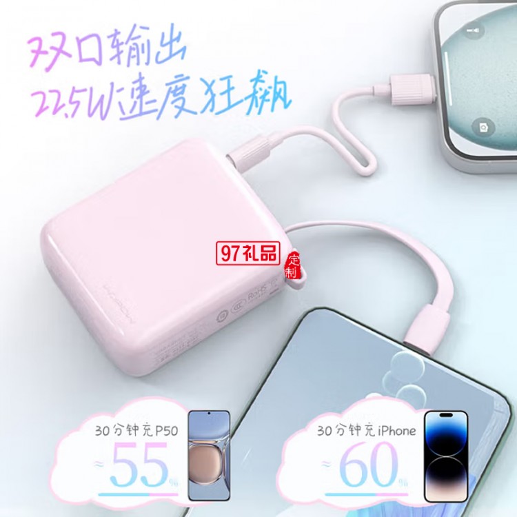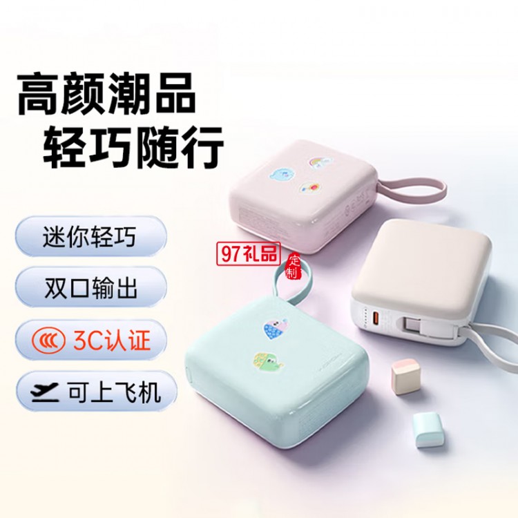 小方糖充電寶10000毫安 PD22.5W快充 便攜小巧自帶線移動(dòng)電源