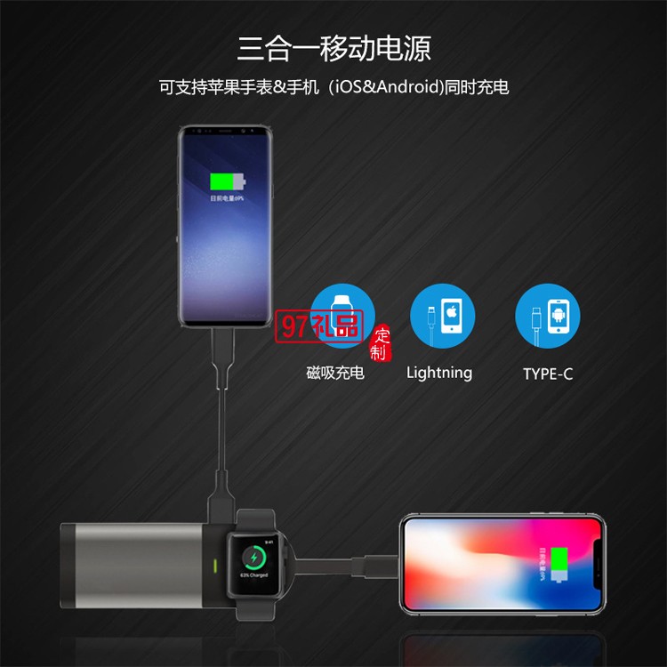 中國工商銀行定制 自帶線三合一無線充電寶 小巧便攜
