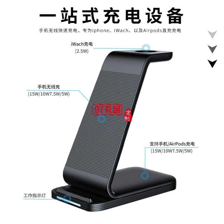 三合一無線充電器 快充10W手機(jī)耳機(jī)手表無線充