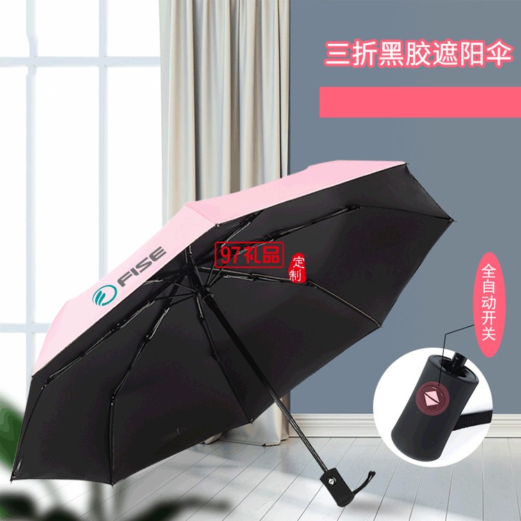 晴雨傘兩用自動(dòng)三折黑膠遮陽傘定制戶外防紫外線折疊太陽防曬傘