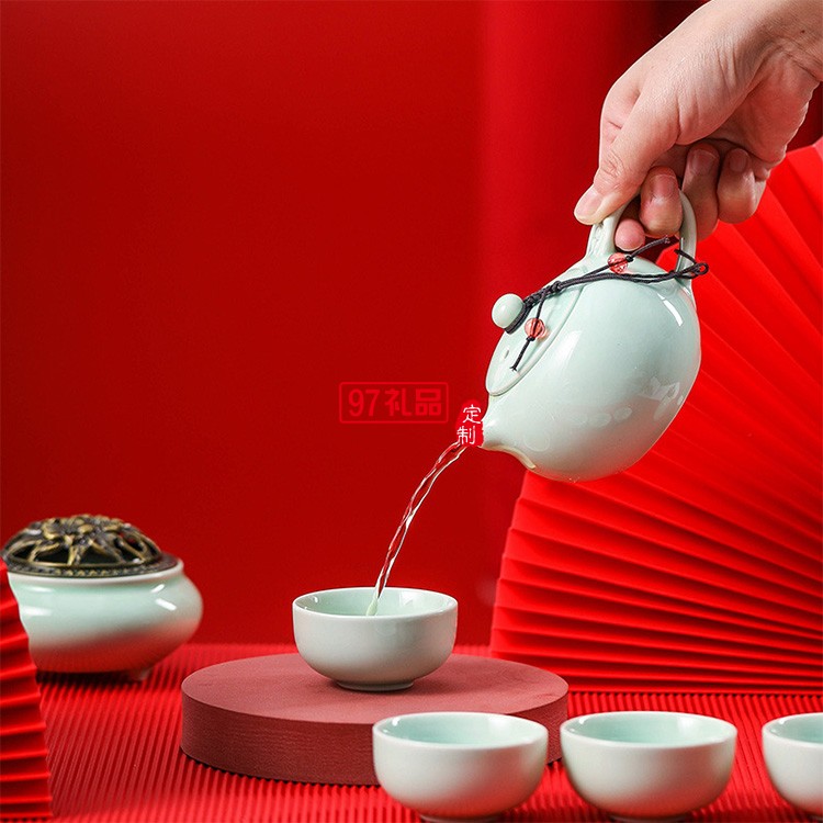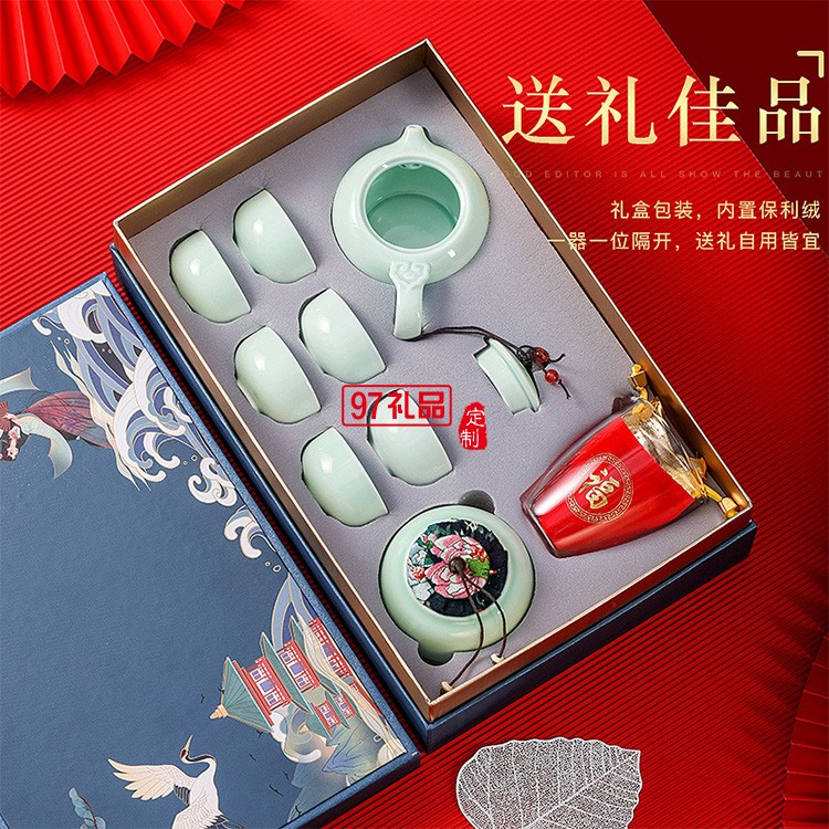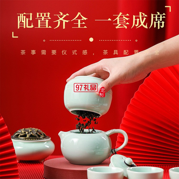 整套陶瓷功夫茶具套裝帶茶葉罐蓋碗茶杯茶壺制定logo商務(wù)禮品