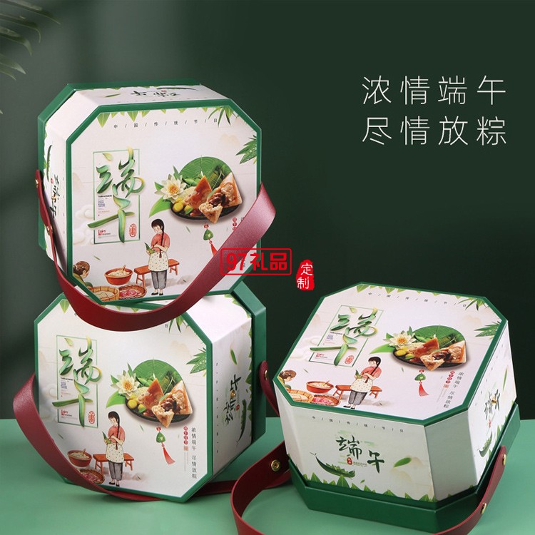 創(chuàng)意現(xiàn)貨八角創(chuàng)意手提端午粽子包裝盒6個(gè)裝空盒定制LOGO禮盒