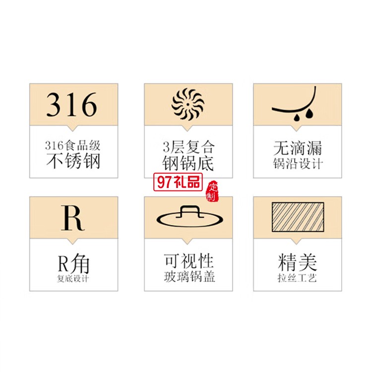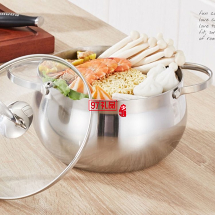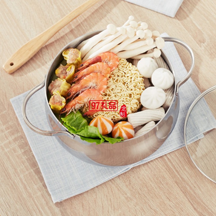 歐美達(dá)316不銹鋼湯鍋加高加厚不粘鍋具雙耳燉鍋定制公司廣告禮品