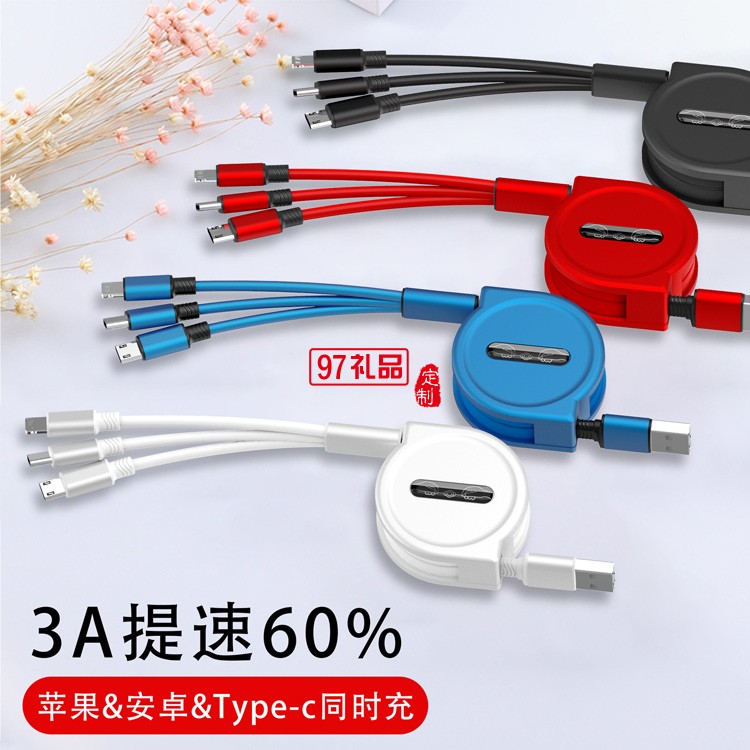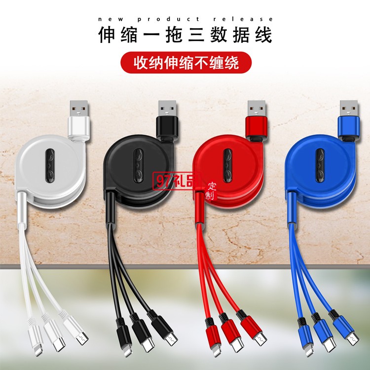 伸縮一拖三數(shù)據(jù)線定制logo