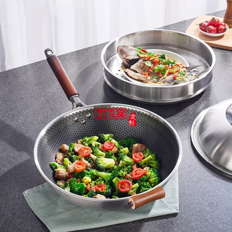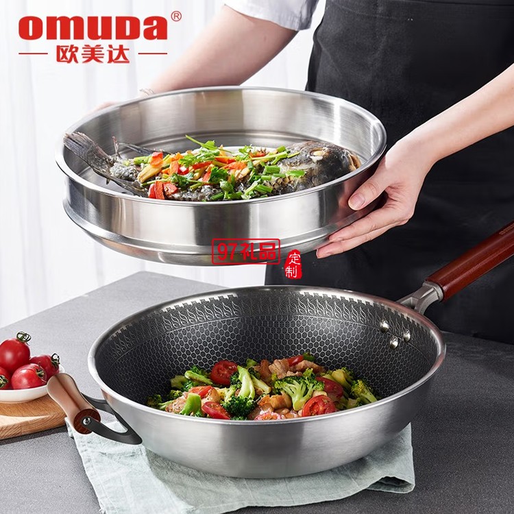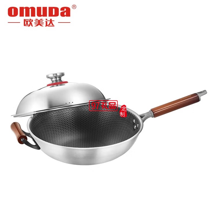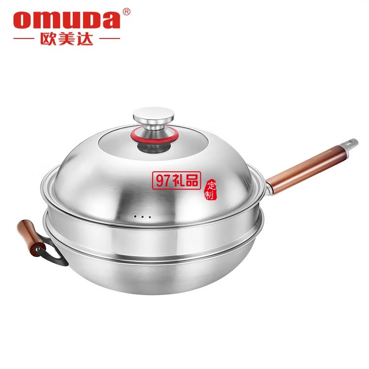 歐美達(dá)不銹鋼炒鍋燃?xì)庠钸m用電磁爐炒菜鍋 32cm定制公司廣告禮品