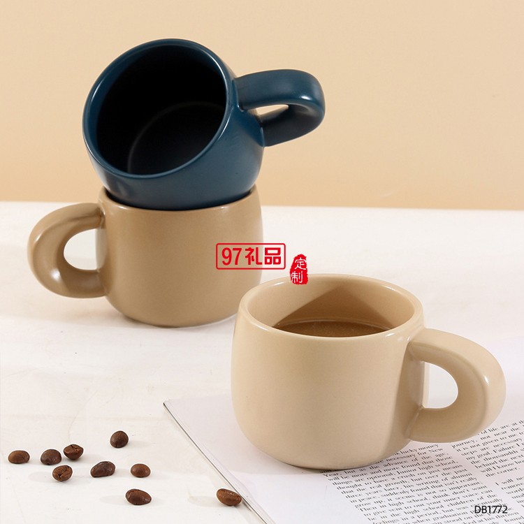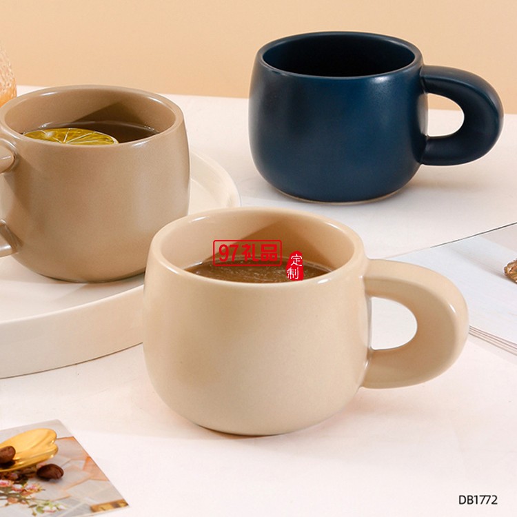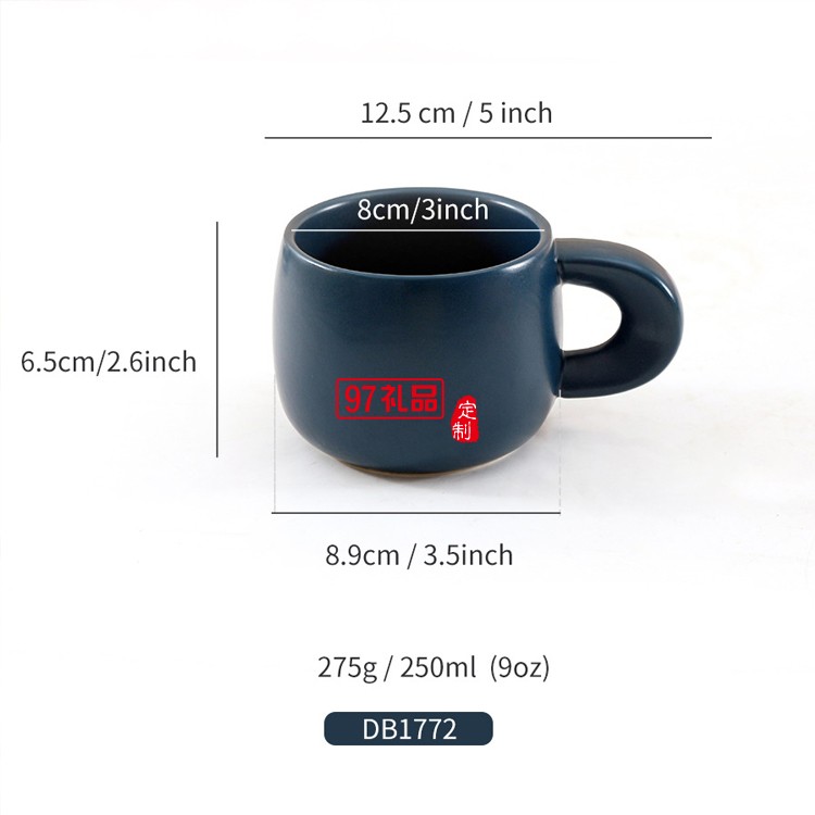 定制克萊因藍(lán)咖啡杯啞光馬克杯創(chuàng)意大肚陶瓷杯伴手禮活動(dòng)小禮品