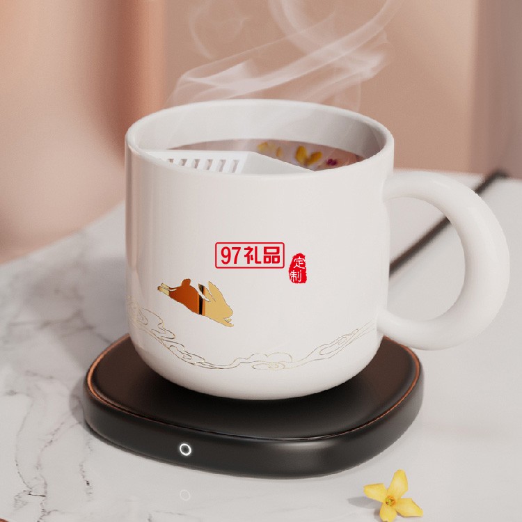 55度恒溫杯加熱杯子創(chuàng)意水杯陶瓷馬克杯帶蓋