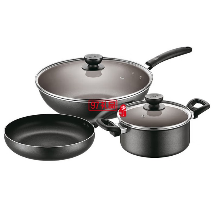 蘇泊爾炫彩不粘三件套鍋具炒鍋煎鍋湯鍋TP1617K定制公司廣告禮品