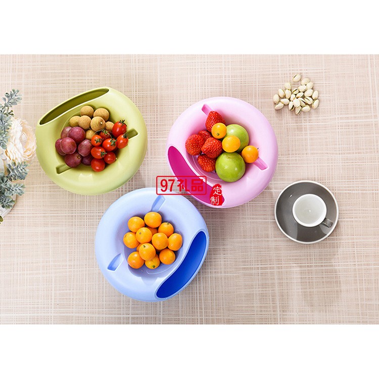 桌面創(chuàng)意懶人垃圾桶塑料雙層客廳臥室可置手機果盤瓜子盤