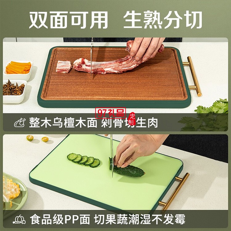 雙槍烏檀木菜板防霉家用砧板實(shí)木案板廚房塑料粘板雙面切菜板