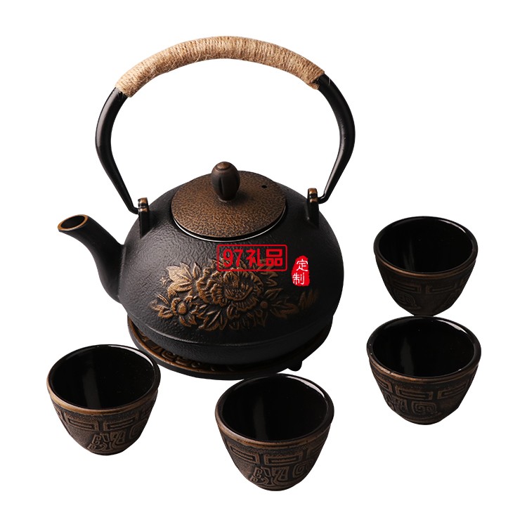 翻砂鐵壺+四個(gè)中鐵杯+墊叉包裝 定制茶具 定制logo