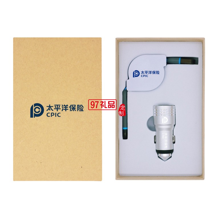 汽車用品4s店保險(xiǎn)定制logo 數(shù)據(jù)線+安全錘套裝