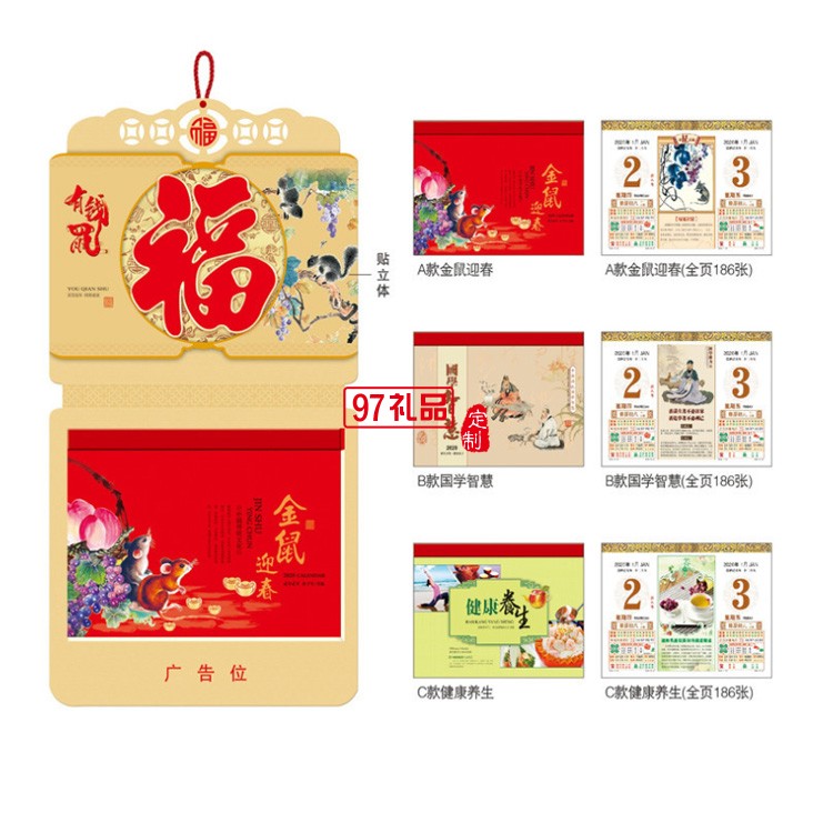 鼠年臺(tái)歷創(chuàng)意簡(jiǎn)約桌面擺件月歷定制節(jié)日禮品