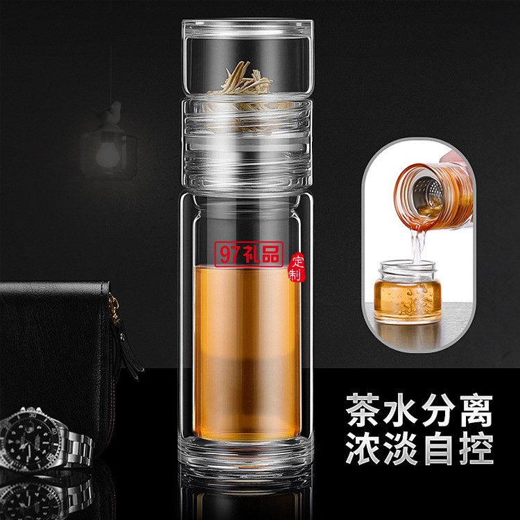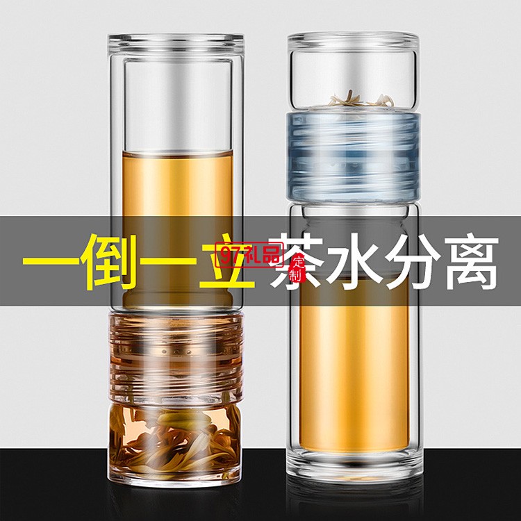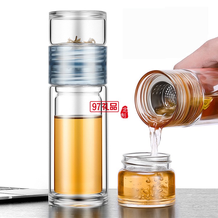 玻璃杯雙層茶水分離杯泡茶杯禮品杯子定制