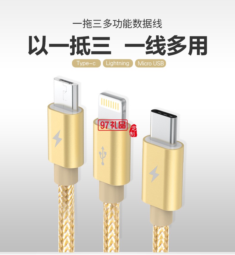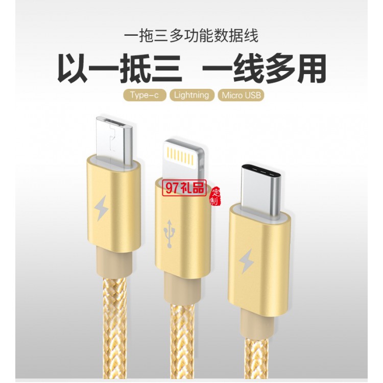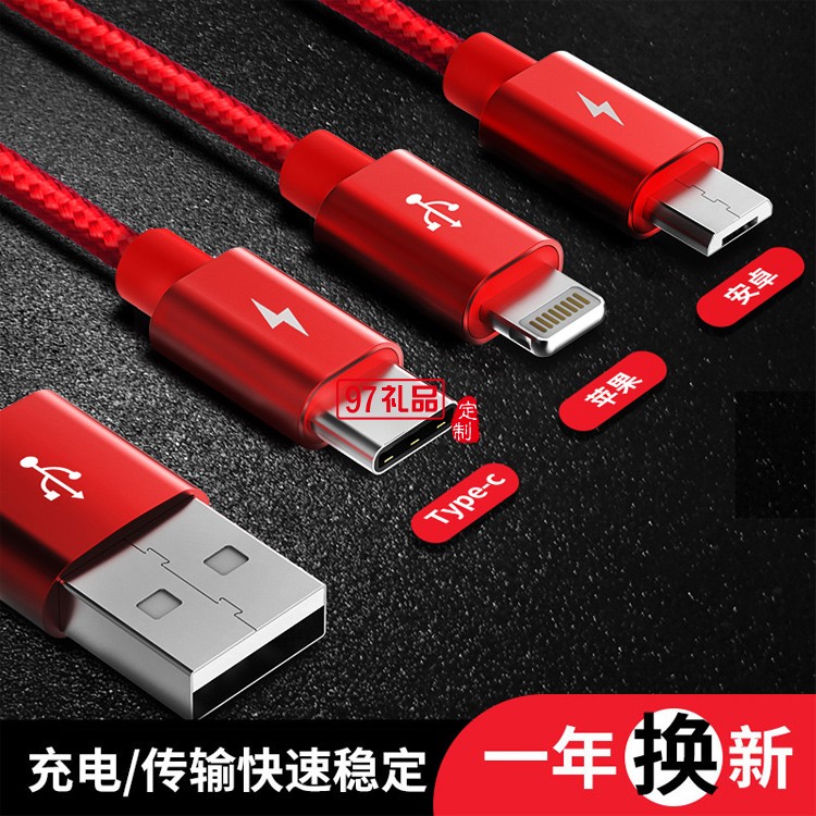 一拖三數(shù)據(jù)線伸縮充電線快充三頭適用蘋果華為活動(dòng)小禮品定制