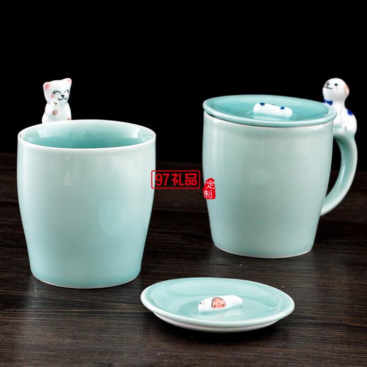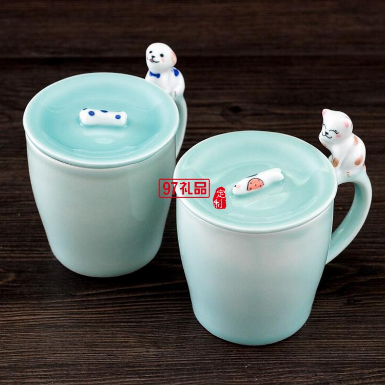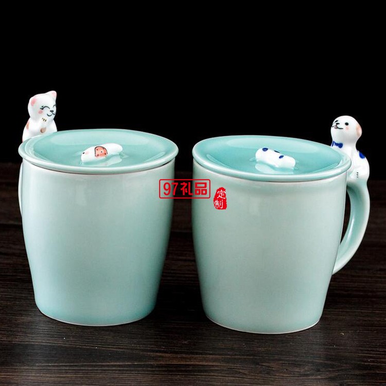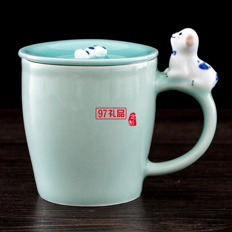 地王大酒店定制案例 把手帶蓋萌物杯 創(chuàng)意 陶瓷杯