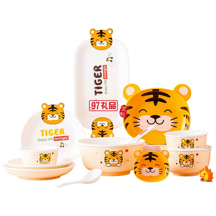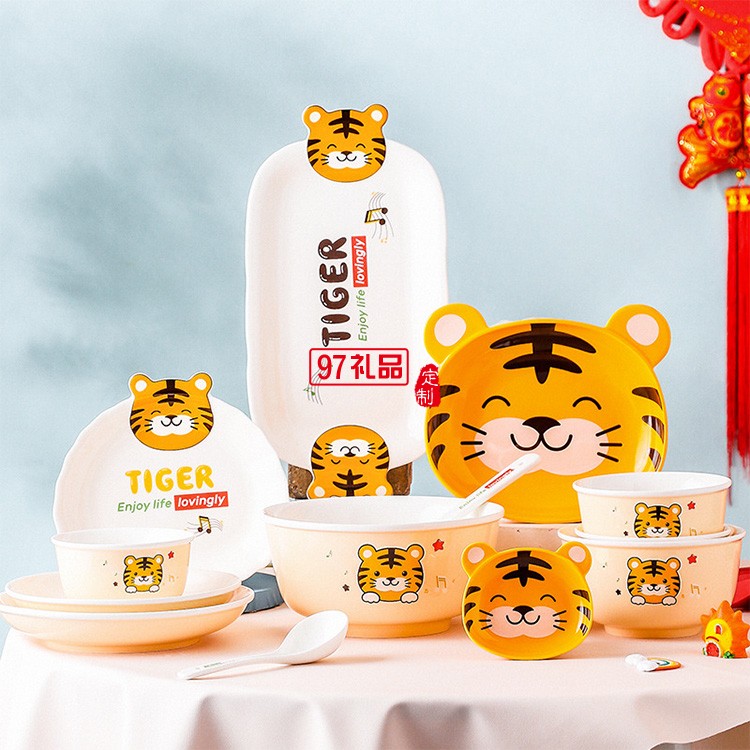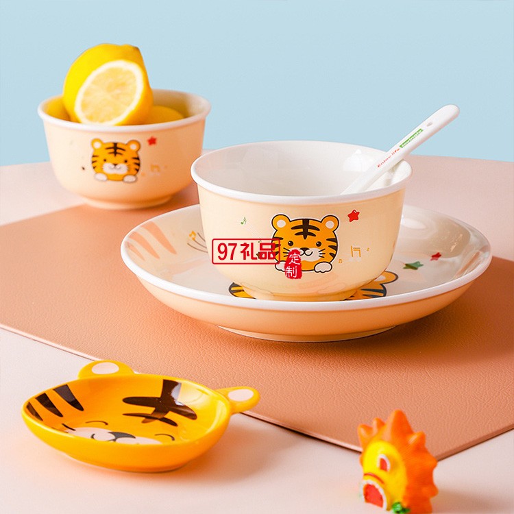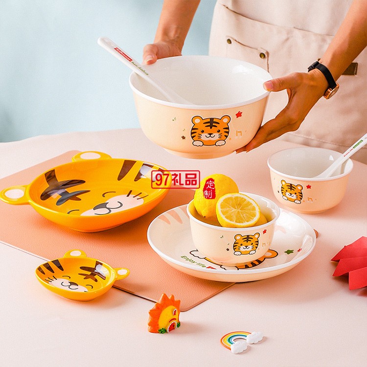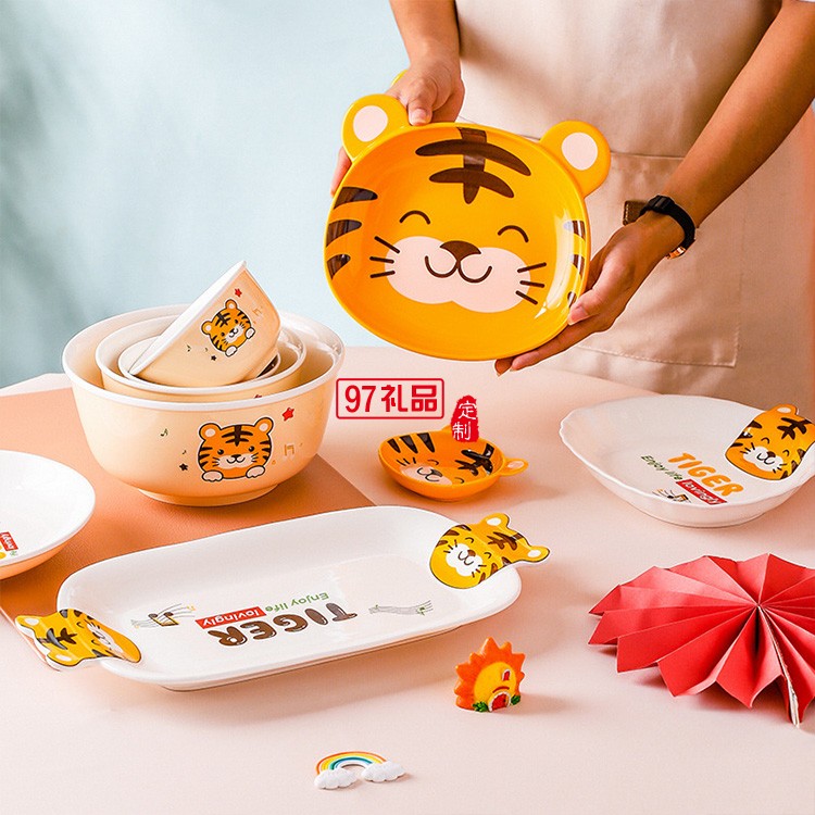 虎年新年陶瓷老虎餐具新款卡通吃飯碗套裝禮盒家用中式餐具碗碟盤