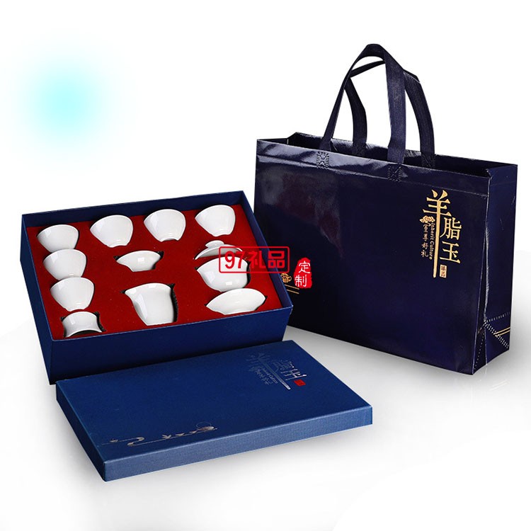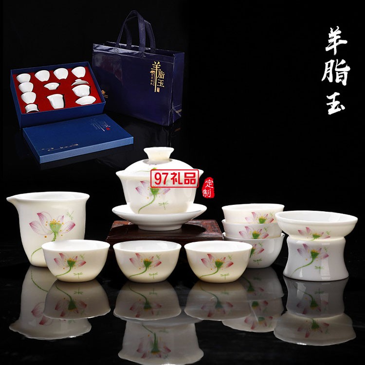 十頭羊脂玉瓷茶具套裝
