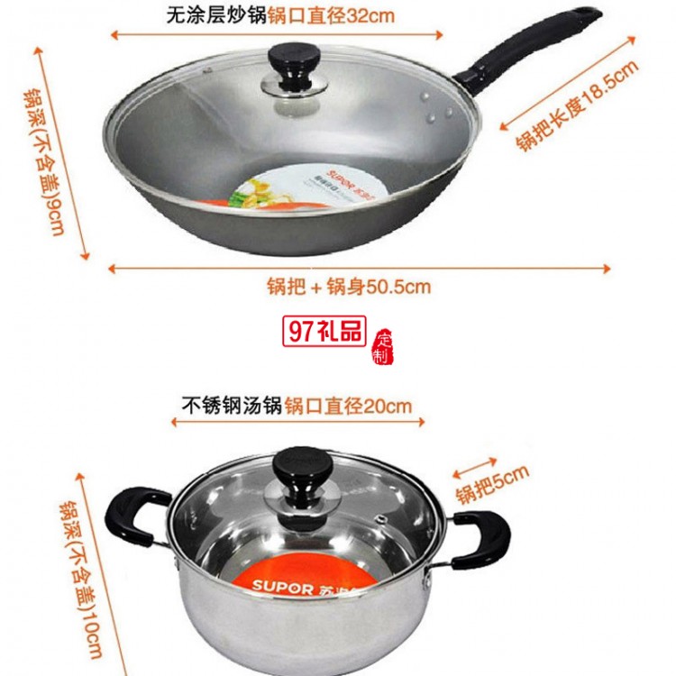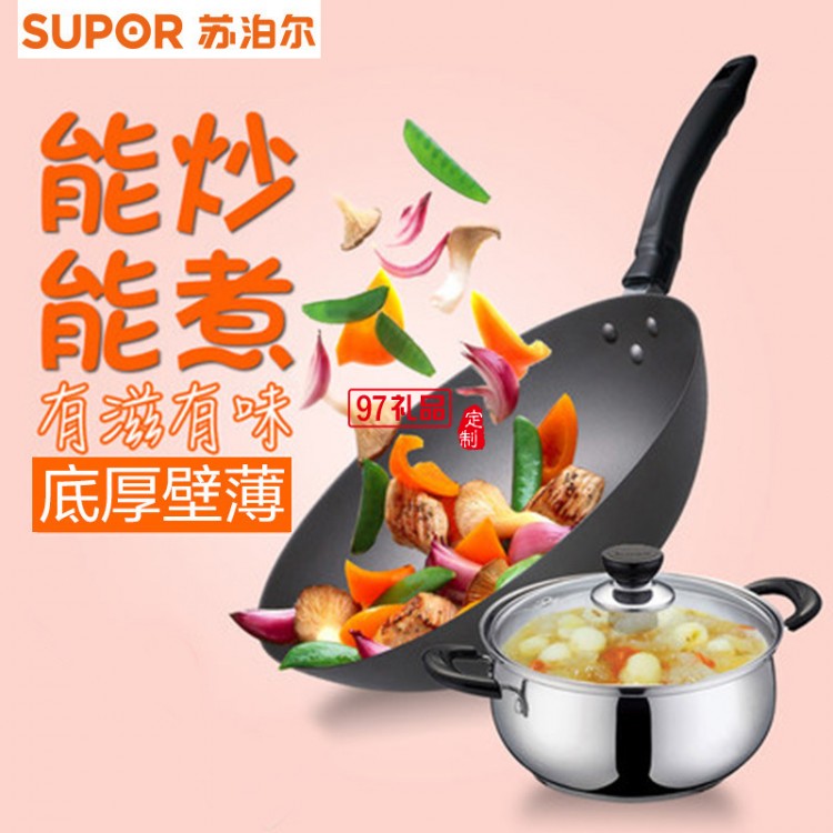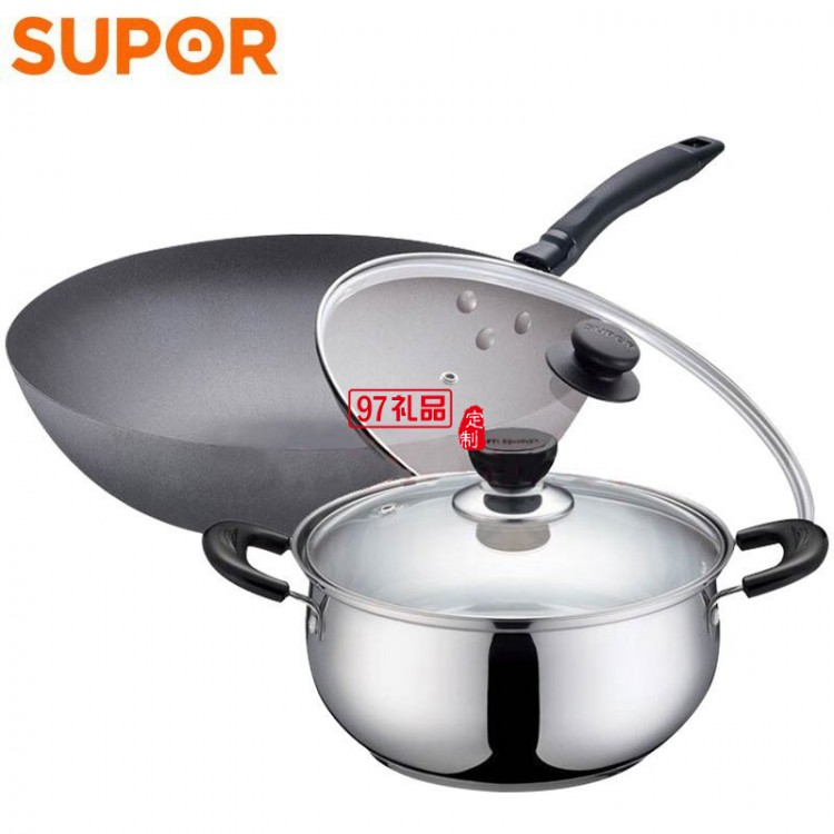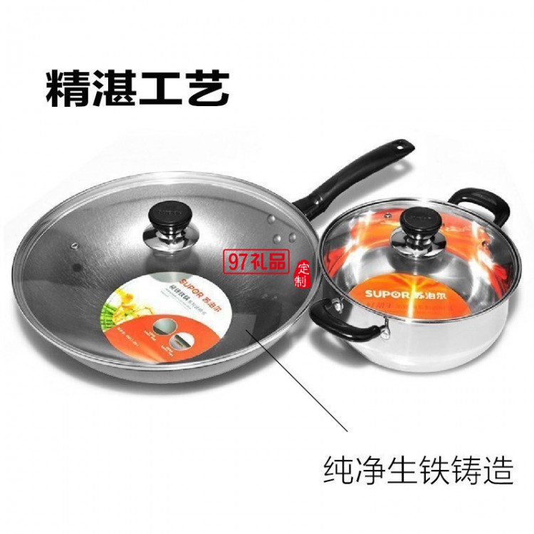 蘇泊爾鐵鍋2件套裝鍋炒鍋不銹鋼鍋湯鍋套裝送客戶禮品員工福利定制