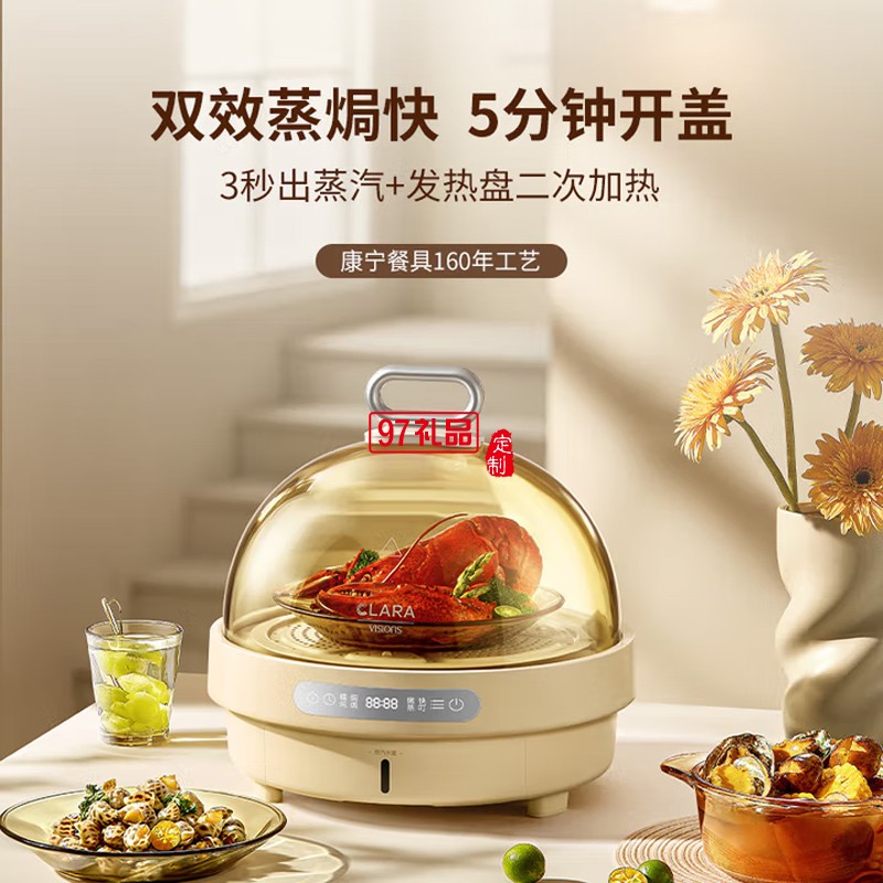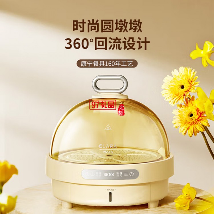CLARA克拉拉速蒸鍋3秒出蒸汽電蒸鍋360°回流康寧餐具琥珀色玻璃