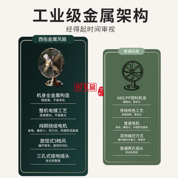 西佑風(fēng)扇家用床頭扇復(fù)古桌面風(fēng)扇臺式小風(fēng)扇小型輕奢純金屬古銅輕音風(fēng)扇