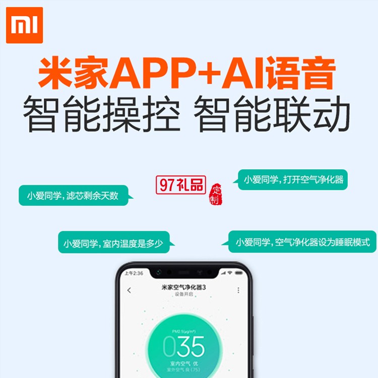 小米空氣凈化器3 家用小型除甲醛米家凈化器辦公室臥室定制公司廣告禮品
