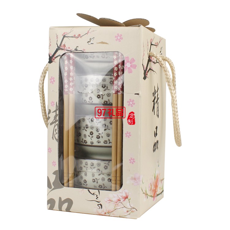 陶瓷豎款4碗筷套裝商務(wù)活動(dòng)禮品logo定制結(jié)婚回禮公司活動(dòng)禮品
