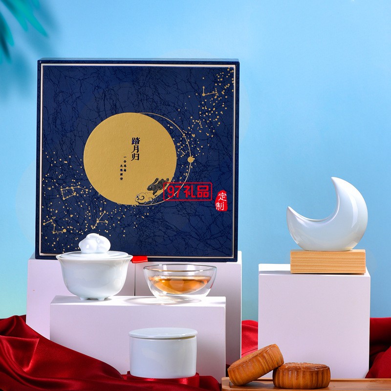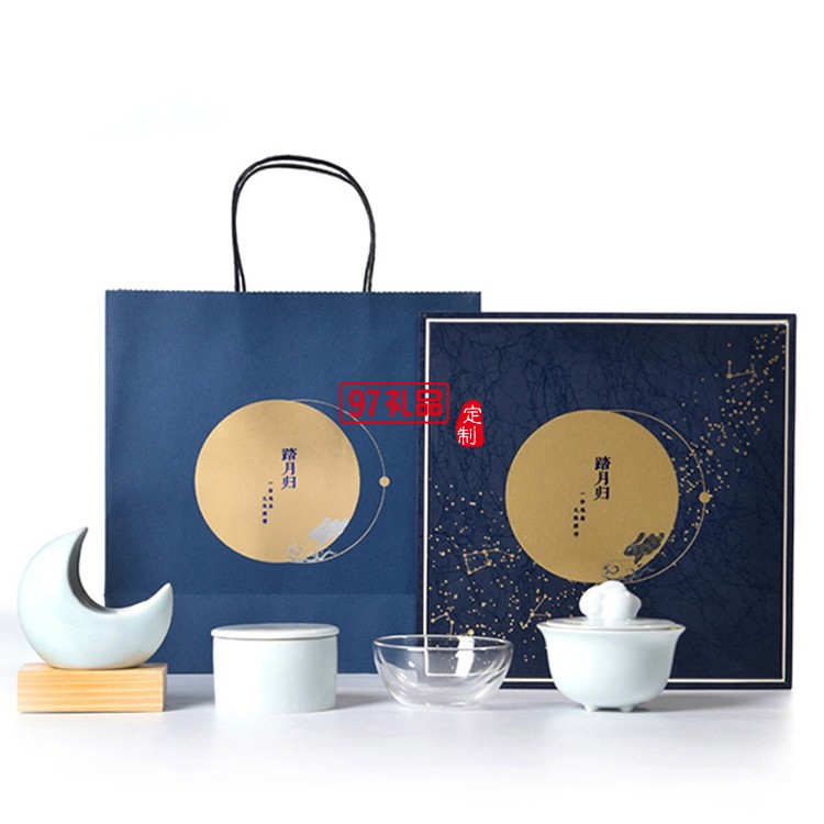 中秋禮品創(chuàng)意擺件踏月歸茶具套裝帶茶葉罐