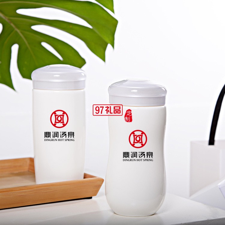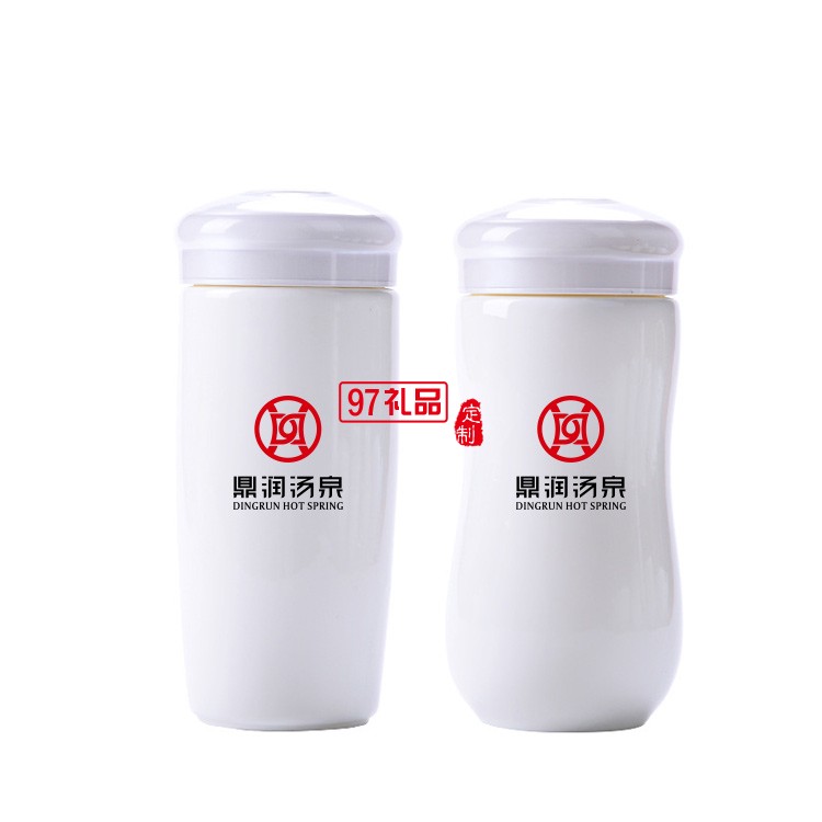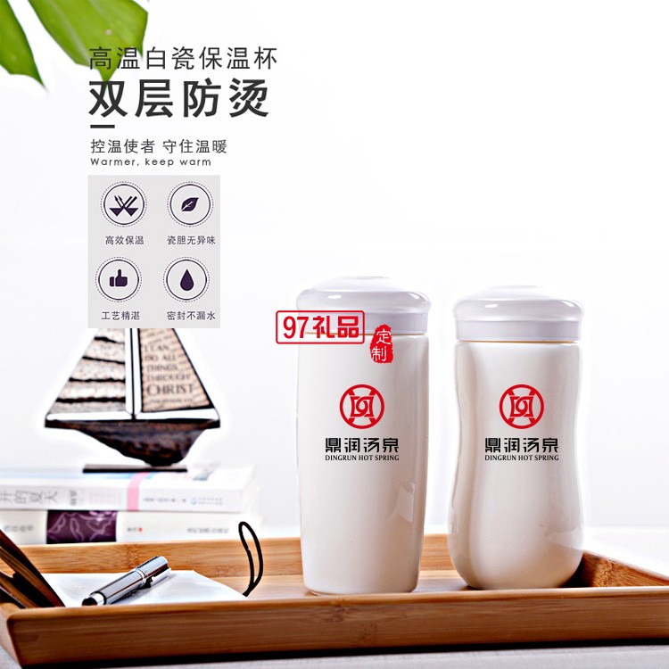 鼎瑞湯泉定制陶瓷雙層保溫杯創(chuàng)意帶蓋白瓷保溫杯可定制畫(huà)面logo伴手禮