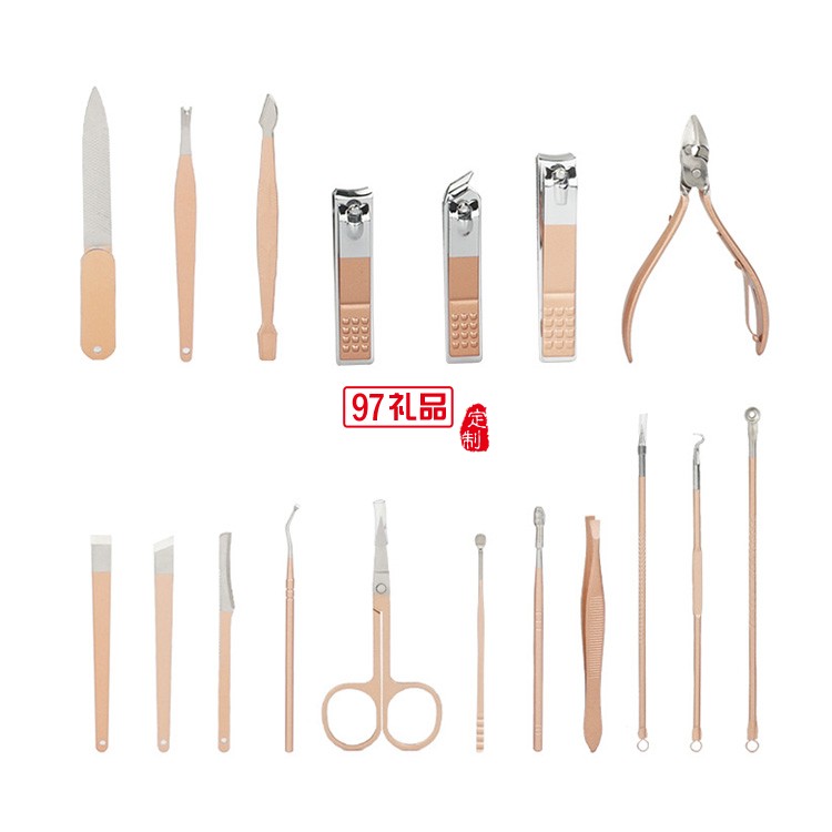 18件套玫瑰金粉色拉鏈包不銹鋼指甲剪美容套裝可定制logo
