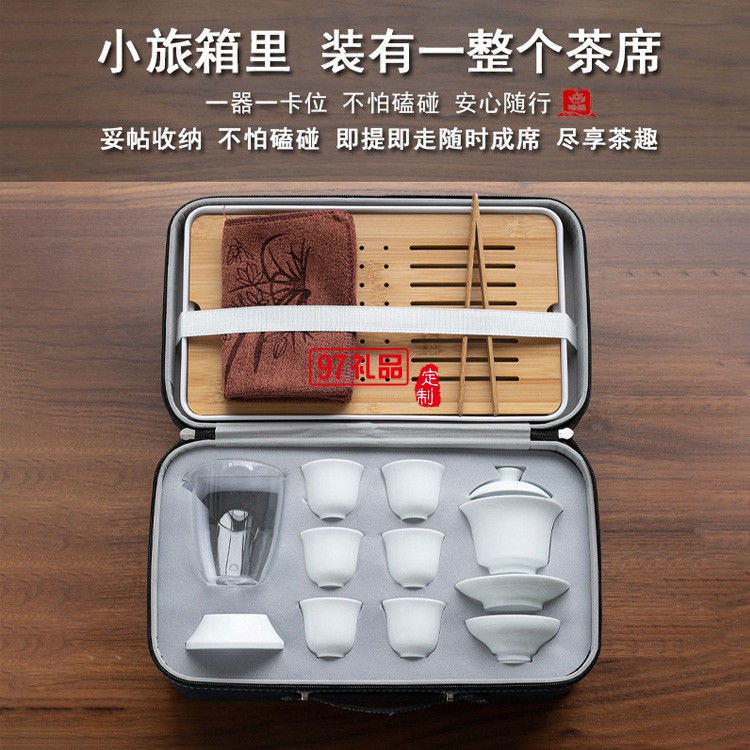 白瓷茶藝教學功夫茶具套裝家用便攜包旅行德化陶瓷蓋碗泡茶具