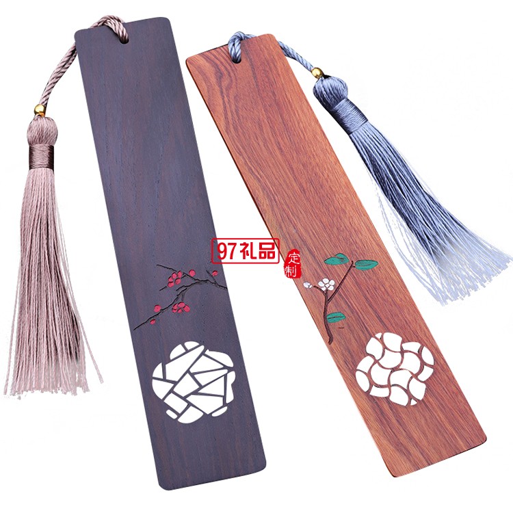 特色黑檀木對(duì)書簽 典雅木質(zhì)禮品 可加logo刻字 巫山滄海紫檀書簽
