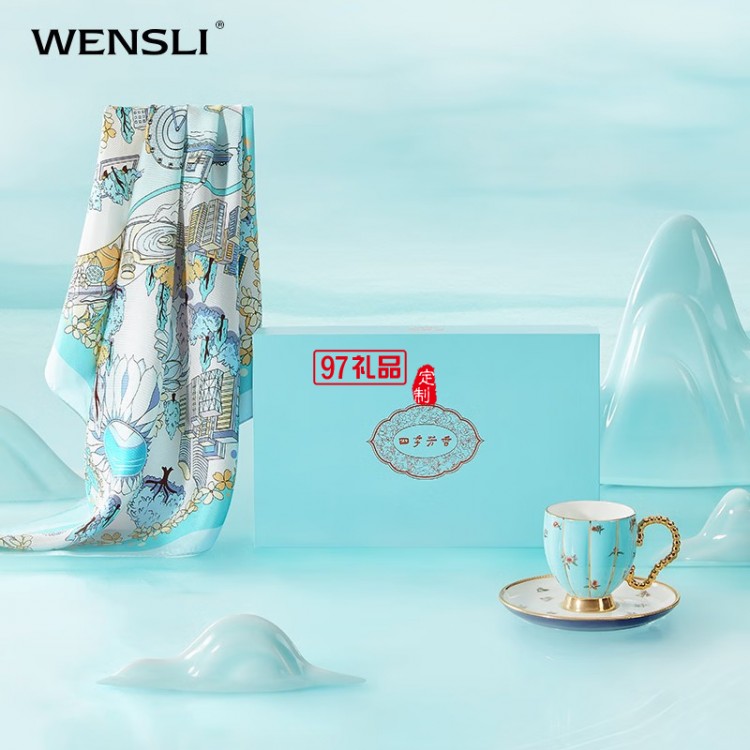 萬事利春夏新品真絲雙面異色中方巾送禮禮盒絲瓷套裝-亞洲芳香 亞洲芳香·