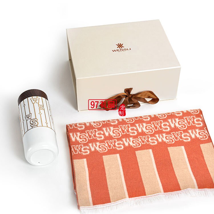 萬(wàn)事利冬季2022年送禮新款真絲絨圍巾陶瓷隨行杯禮盒