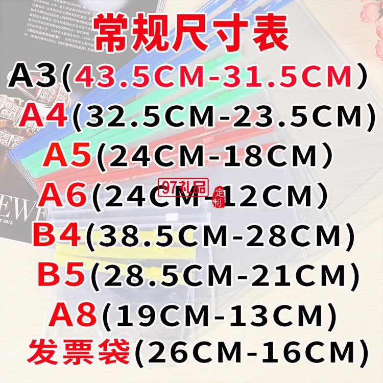 a4透明pvc塑料文件袋定制大容量a3防水a(chǎn)5拉邊收納檔案袋
