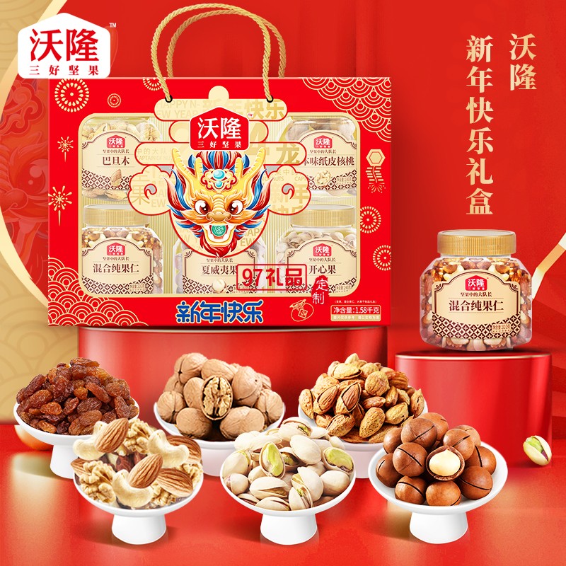 單件凈含量:1580g品名:沃隆堅果禮生產(chǎn)許可證編號:SC11737021401064