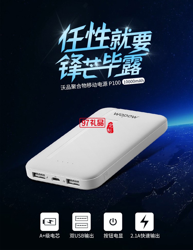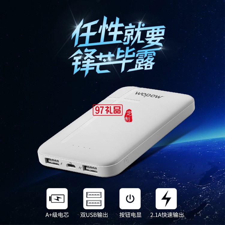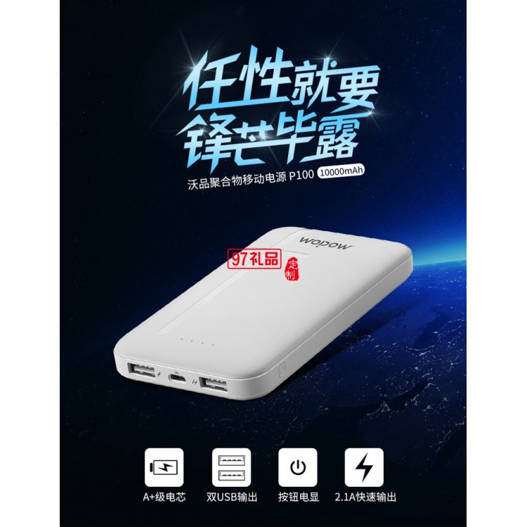 沃品P100手機充電寶10000毫安快充纖薄聚合物移動電源