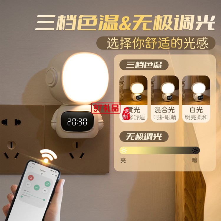 創(chuàng)意 小夜燈 擺件 充插兩用 便攜 照明 時(shí)鐘小程序宇航員小夜燈