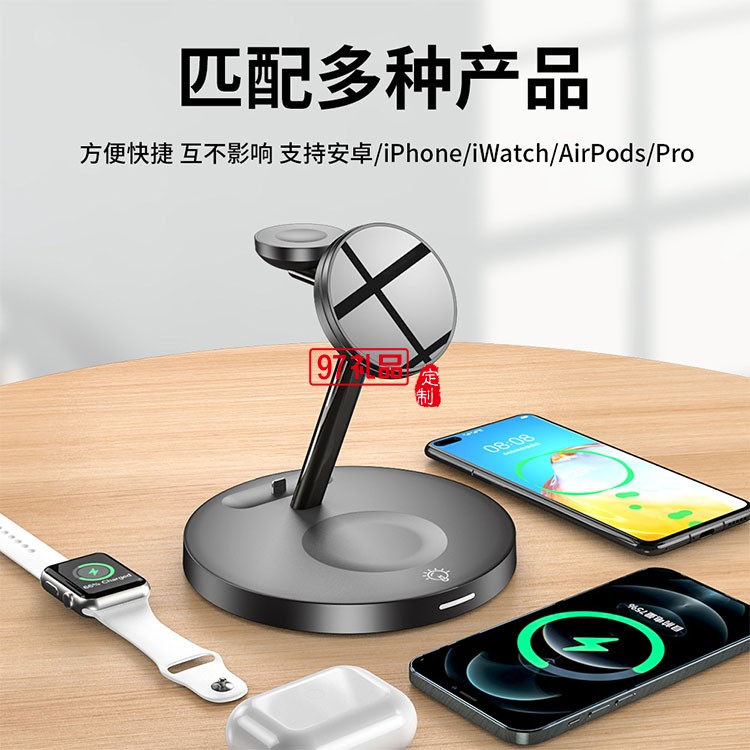 新款磁吸適用iPhone13 Magsafe快充三合一無線充電器