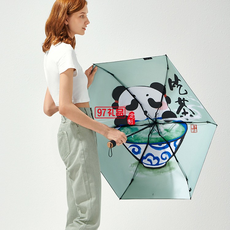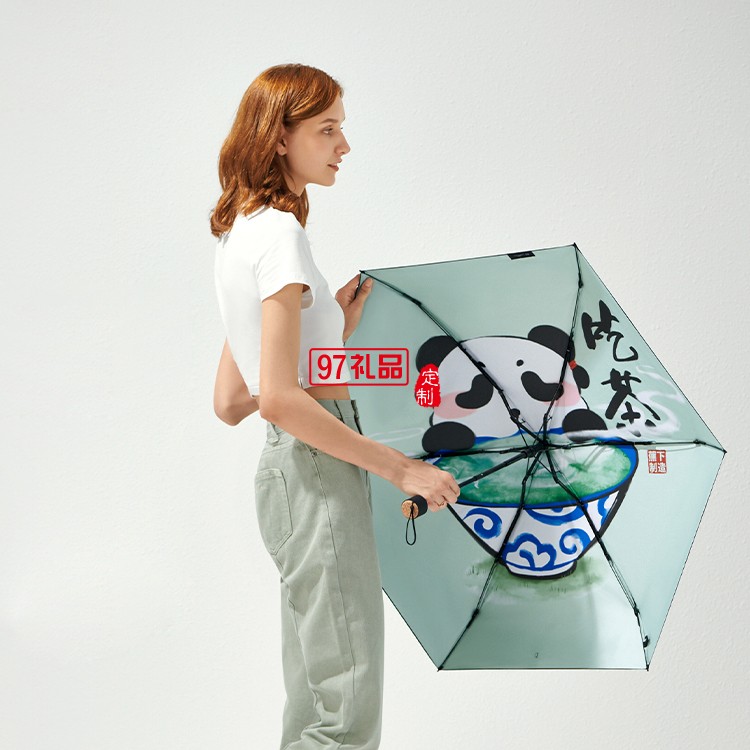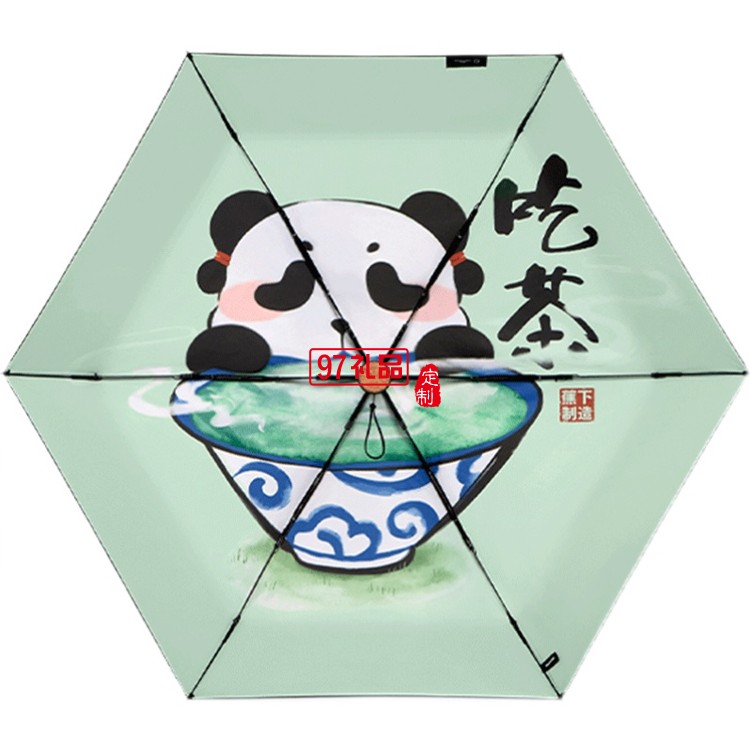 遮陽(yáng)傘女晴雨兩用小巧便攜膠囊黑膠防曬國(guó)潮熊貓?zhí)?yáng)傘定制公司廣告禮品
