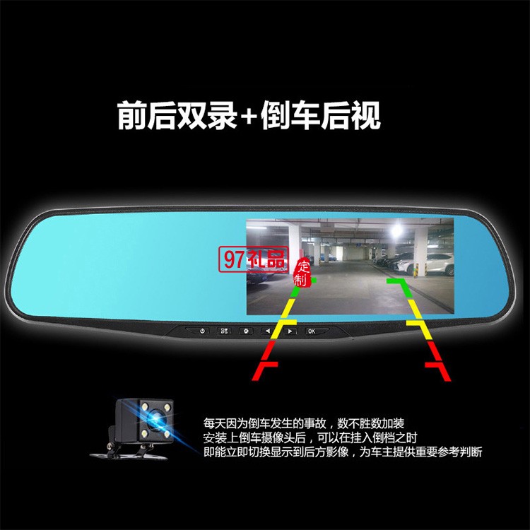 行車記錄儀前后雙鏡頭后視鏡高清夜視倒車停車監(jiān)控車險禮品