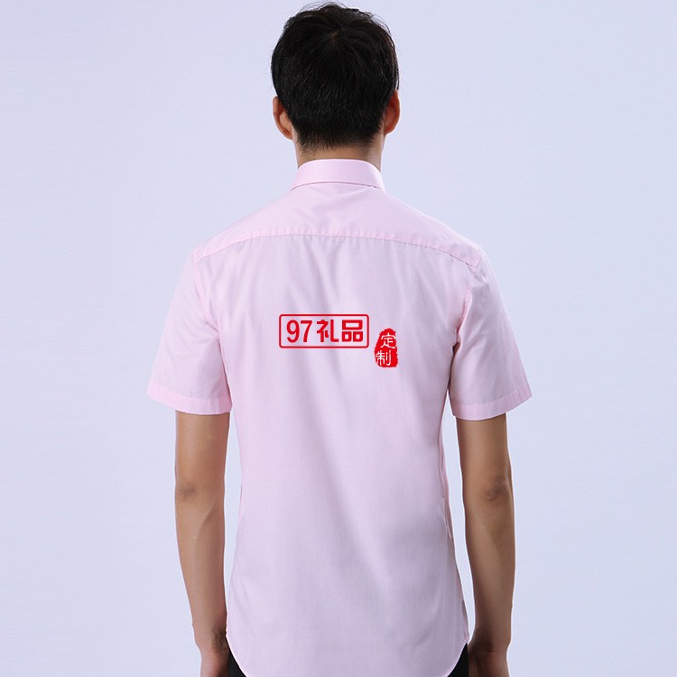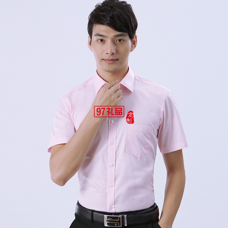 夏季新款粉色男式短袖襯衫 辦公室職業(yè)裝男士商務(wù)襯衫