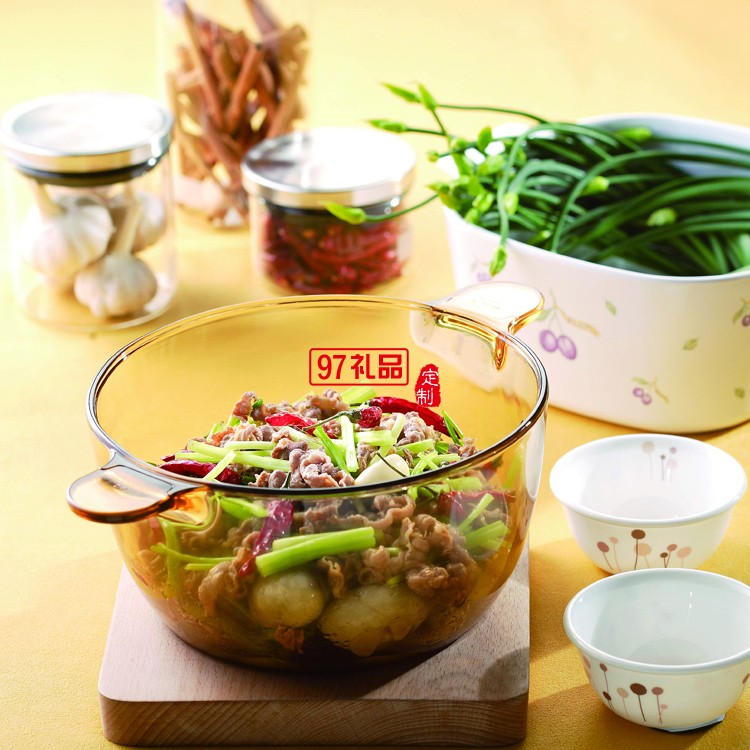 晶彩透明鍋耐高溫玻璃鍋明火直燒燉鍋煲2.5L定制公司廣告禮品
