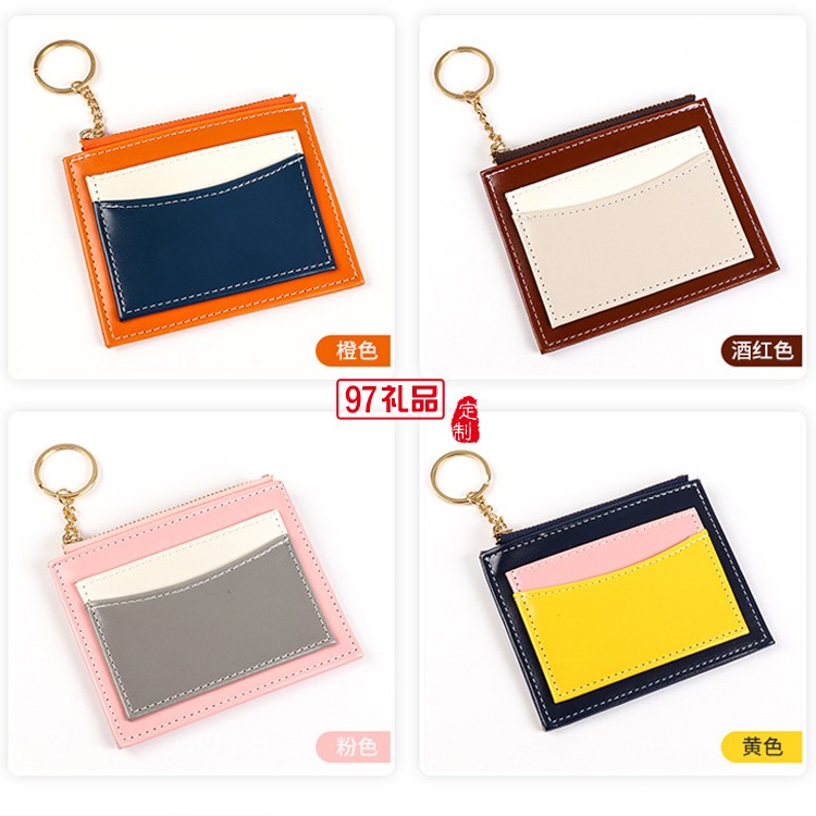 拼接PU卡套簡約商務皮質(zhì)皮革彩色拼接拉鏈公交